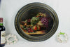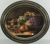 Gorgeous french oil cardboard painting oval formstill life with flowers / fruitssigned at right middle but can not...