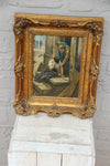 OIL on panel painting French 19th c signed with initials/ monogram nice wood frame44x31,5 cm with frame