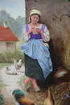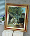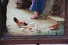 gorgeous vintage flanders oil on canvas paintingChicken family on a flanders farm which the stable in the backgroundroosters...