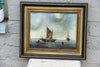 Vintage oil canvas painting with fisherman and boats maritime themeis a vintage painting referring to old 19th c...