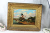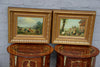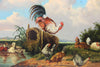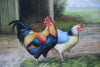 Gorgeous pair french oil panel painting with rooster / chicken animal scenes signed both by artist but can...