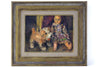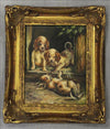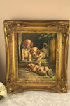 Gorgeous vtg paintingoil on paneldogs playingsigned right below but can not read it36x31cm with framecirca 1950