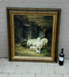 gorgeous flemish oil on canvas paintinga farm stable scene with sheep / chickensigned by flemish artist IVO STEENS...