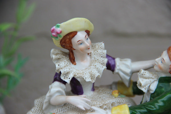 German porcelain lace group figurine romantic marked carl scheidig grafenthal