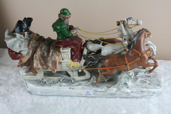 Large German Scheibe alsbach marked porcelain napoleon in sled group figurine