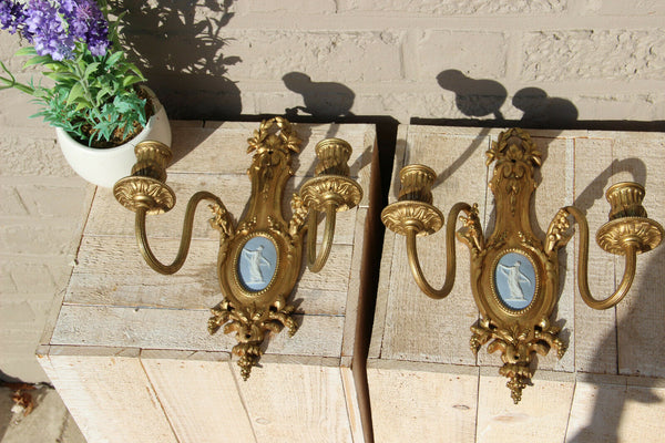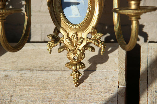 PAIR antique French brass Wall lights sconces Wedgwood porcelain plaques