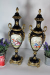 pair vintage acf sevres marked porcelain vaseswith victorian romantic decors43 cm height and 18 cm wide each good...
