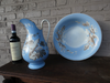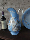 vintage rare porcelain wash basin + pithcerwith cockatoo and parrots decorvery beautifulbasis is 37,5 cm wide and 12...