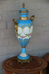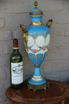 Antique French Turquoise blue porcelain Vasefloral decor and bronze side ornaments with putti / caryatids50 cm height1930/1950 periodgood...