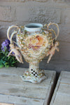 Antique german porcelain vasewith puttis and relief floral decormarked at base23 cm height and 19 cm wide handle...