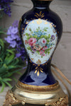 French vintage table lampcobalt blue limoges porcelain with floral decor 27 cm height and 49 cm height with...
