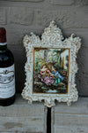 Vintage capodimonte marked porcelain wall plaquefor wall hangingrelief with romantic scene marked with capodimonte stamp at back 32.5...