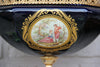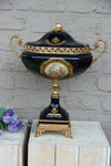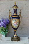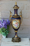 Vintage French limoges cobalt blue Centerpiece / lidded bowl with romantic victorian scenes front and backside41 cm height...
