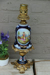Antique French oil lamp in bayeux porcelain which has been electrifiedwith hand paint lady figurine on frontside and...