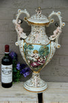 Gorgeous and rare capodimonte porcelain vasemarkedliddeddecorated with puttis on the handles and topromantic scene front and backside with...