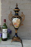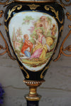 XL PAIR French porcelain vasesWith romantic scenes rare because of the bronze dragons on the handles marked with...