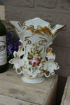Antique vieux paris porcelain vasehand paint floral scene21 cm wide and 25.5 cm heightsmall hairline back but not...