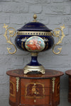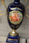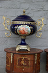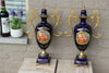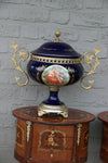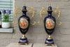PAIR vintage french porcelain vasein dark blue porcelain de limoges with victorian romantic scenes 49 cm height each...