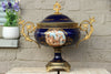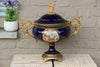 large french centerpiecein cobalt blue porcelain with romantic scene 40 cm height and 42 cm wide handle to...
