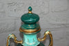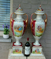 Huge pair antique german vaseswith victorian scenes front and backside and on the lids also marked at base...