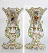 PAIR Exclusive French vieux paris porcelain vasesvery detailed with encrusted majolica flowers ( a few chips in the...