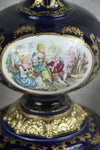 Vintage cobalt blue Lampwith romantic victorian sceneon top a glass shade62 cm total heightmarked at bottom and original...