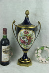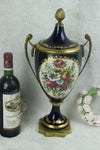 French Vintage cobalt blue vasein porcelain de sevresfloral decor 196045 cm heigt and 22 cm wide handle to...