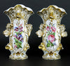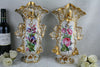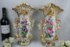 GORGEOUS PAIR 19th c France vieux pairs porcelain Vaseshand paint floral decorcornet vases typical for vieux paris vases34cm...