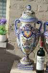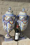 Majestical large Vieux ROUEN French faience vases in the typical rouen floral decor liddedmarked at bottom1950s61 cm height...