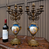 PAIR antique french candelabrascame out of a parisian housewith sevres hand paint porcelain decors and bronze ram heads...