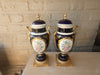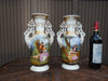 pair antique french vieux paris paint porcelain vaseswith romantic decors and landscape decors backvery beautiful set33 cm height...
