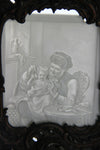 A stunning antique piece from Germany Lithophane Porcelain plaque with impressed number at back you see the scene...