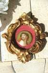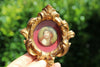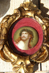 Cute small Religious wall hanger framed and inside a porcelain plaque with christ 12 x 10.5 cm 1920...