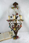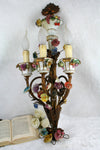 gorgeous 1970's Italian wall light metal with porcelain floral decor! one of the most beautiful wall lights i...
