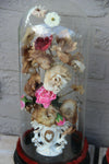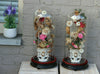 Antique PAIR Globes Glass vieux paris porcelain mini vase with silk floral decor in the vase , very...