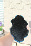 gorgeous french antique holy water fontwith a hand paint porcelain medaillon with madonnaon blue velvet 28.8 cm height...