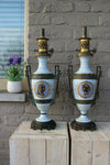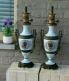 Antique PAIR French oil lampsporcelain with egypt portrait heads bronze framemarked on the inside 1920s 56 cm heightvery...