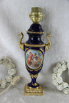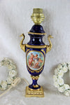 A gorgeous vintage french table lamp in cobalt blue porcelain from limoges city in france victorian romantic scene...