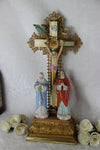 gorgeous French antique crucifixcalvarywith porcelain bisque figurines at bottomchalkware polychrome christcirca 1900 France44 cm height and 20...