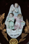 Religious Medaillon with a bisque porcelain group of angels plaster gold decoration left and right of it (...