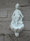 antique french porcelain bisque holy water font angelsigned LETU MAUGERfrance 19thc18,5 x 7,5 cm