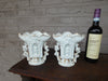 pair antique small french vieux paris porcelain vasesreligious theme , with saint in niche chapel and angelvery beautifulgood...
