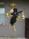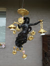Vintage French bronze nymph figural chandelier lampwith porcelain flowersvery beautiful pieceneeds new wiring again 65 cm height and...