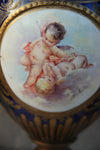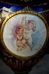 PAIR antique french dark blue porcelain vasesstyle de sevreswith putti decors and music instruments at backsidevery gorgeous pairmarked...
