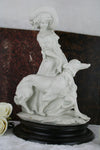 A capodimonte bisque statuelady with whippet dog34cm heightsigned barbetta for capodimonte base in woodd is 21 cm diameter ...