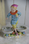 A cute German porcelain salt / pepper holderwith a boy figurine and encrusted floral decor1970' -1980Marked14 cm height...