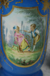 antique french porcelain vase 19thc romantic decor with boy and girl in the typical blue colour which sevres...