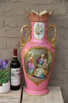 Huge french antique porcelain vasein the top quality and well known vieux paris porcelainpink colouredwith a romantic scene...