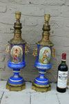 Stunning antique pair of oil lamps which has been electrified to lampsin top quality vieux paris porcelain with...
