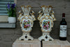 Antique pair vieux paris porcelain vaseshand paint floral decor 32.5 cm height and 22.5 cm wide marked with...
